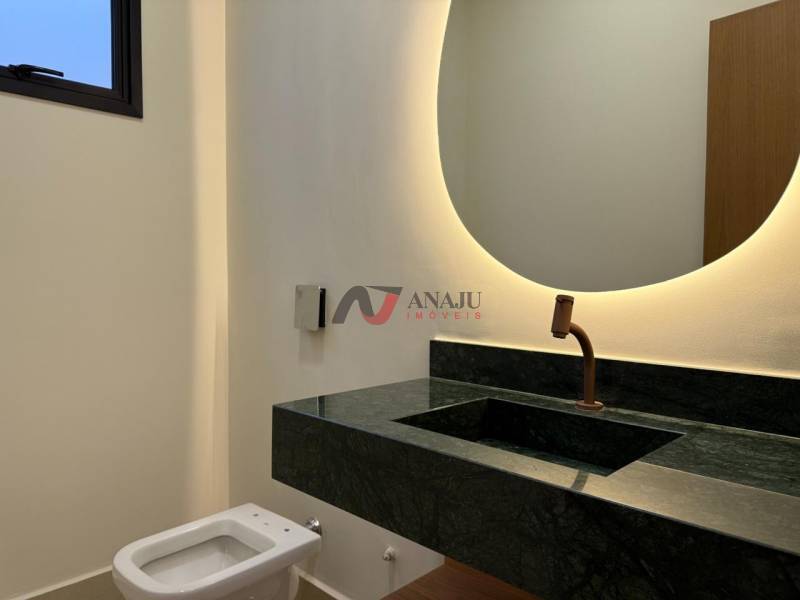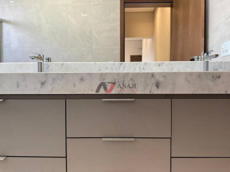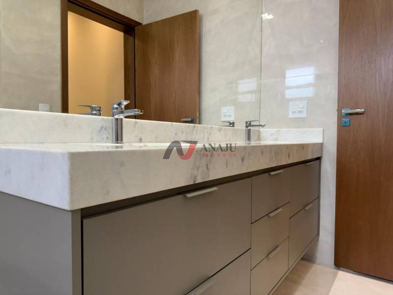 03 SUITES, LAVABO E ESCRITÓRIO. PERSIANAS DAS SUÍTES MOTORIZADAS MARCA CAMPESTRE, ESQUADRIAS MARCA CAMPESTRE, FECHADURA ELETRÔNICA DA PORTA DA FRENTE, DUCHAS MODELO AQUA PLUS MARCA DECA, KIT PORTAS DE MADEIRAS MARCA SINCOL COR TAUARI, COM FECHADURAS DE 55 MILÍMETROS, LAVABO COM PIA DE MARMORE VERDE GUATEMALA COM TORNEIRA COR ROSE GOLD MATTE, BANCADAS BANHEIROS DAS SUITES EM MÁRMORE BRANCO E FACHADA RICA EM PEDRAS MODELO GRANITO MADEIRA AMARELO COM BRISE AMADEIRADO MARCA CAMPESTRE, BANCADA GOURMET GRANITO VIA LACTEA E PAISAGISMO COM PLANTAS ADULTAS.