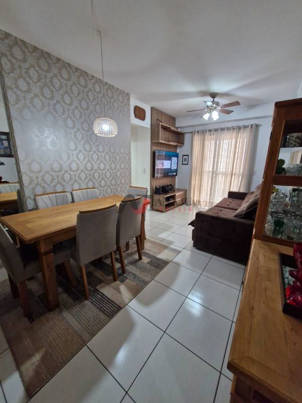 Apartamento com 2 dormitórios (1 suíte), sacada, sala para 2 ambientes, lavanderia separada da cozinha e móveis planejados em todos os cômodos. Possui, ventiladores de teto, luminárias e 2 vagas de garagem. Imóvel de fundo, sem vista livre e com portaria 24h. Agende sua visita.