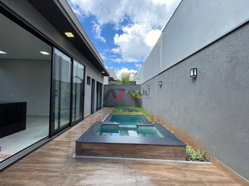 Casa Térrea Condomínio Quinta dos Ventos (nova), área construída 189m², área do terreno 345m² de Ilha, 3 dormitórios, sendo 3 suítes, escritório, 4 vagas (2 cobertas), piscina aquecida, Hidro e cascata* Ponto Ar condicionado em todos os cômodos, armários planejados, telhado madeira peroba, espelhos touch, lavabo, janelas automatizadas, lavanderia, ampla área gourmet com:
