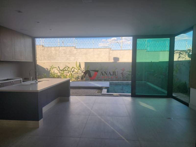 Linsa casa com 3 suítes sendo uma master com pia e chuveiro duplo com closed, Esquadrias todas na linha Gold com vidros verdes laminados e percianas elétricas, Lavabo com cuba esculpida, Home ou escritório, Vestiário área piscina, Completa em armários (Diaz Planejados).