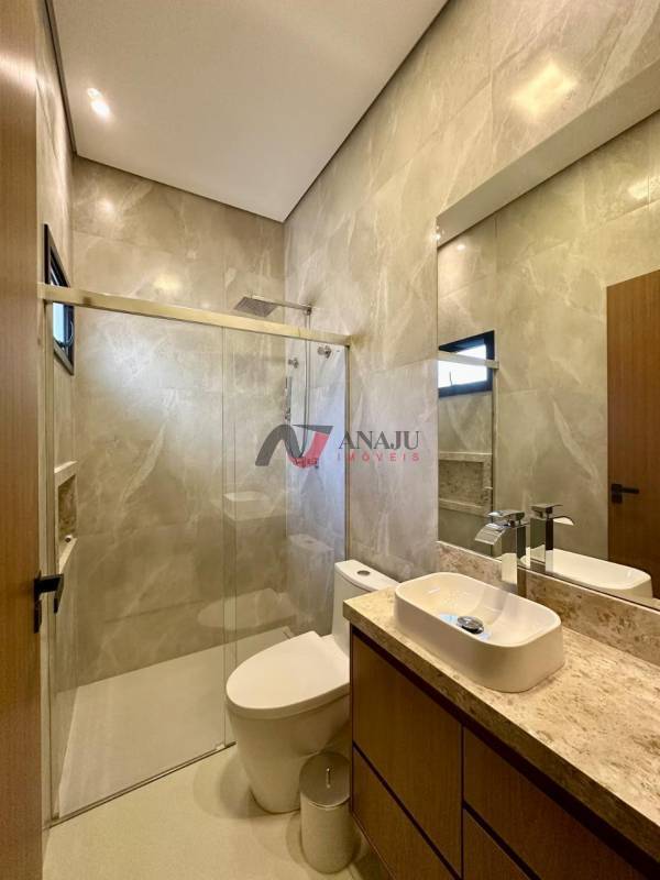 janelas com veneziana embutida, projeto de iluminação e paisagismo completo, toda a casa já com box e espelhos, garagem ampla para 4 carros, marcenaria completa, casa completa, à venda de porteira fechada, ar split nos quartos, Tv Samsung 75", cooktop, geladeira side by side.. itens novos, colocados na casa agora!, agende sua visita vai se apaixonar.