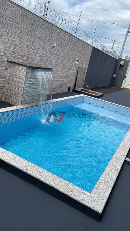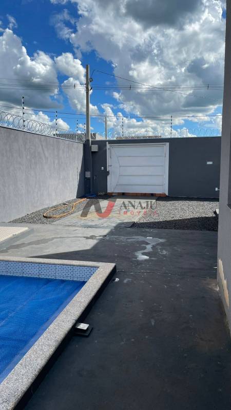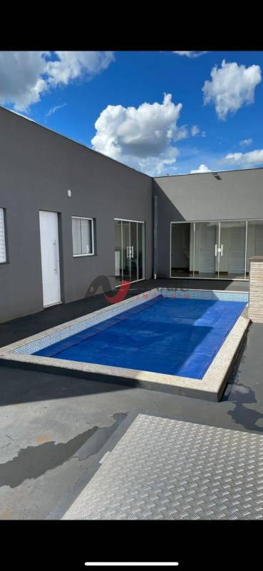 Linda casa terreno 225m², área construída 110m², piscina aquecida 6m²x3m², com cascata e hidro, 2 suítes, área de churrasco com 2 banheiros, sistema CF, cerca elétrica e concertina, garagem para 3 carros, aceita financiamento, agende sua visita..