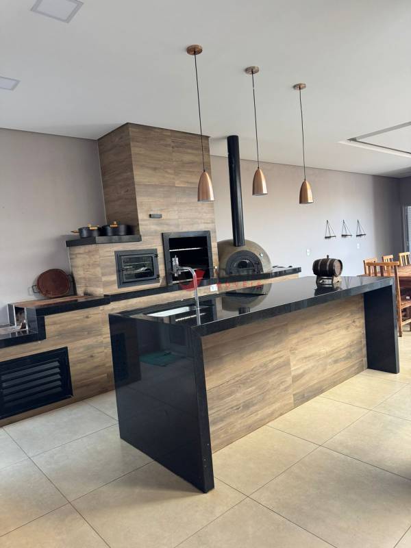 2 banheiros social, sala conjugada com cozinha americana com armários e depurador, área de serviço com banheiro externo, área gourmet com churrasqueira, fogão a lenha e forno de pizza, aquecimento solar, 3 vagas de garagem! Agende uma visita!!