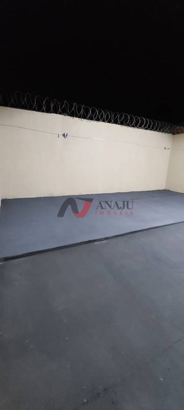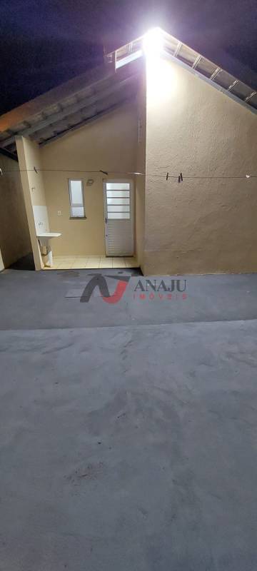 Casa com 2 dormitórios, sala, cozinha, banheiro, duas vagas de garagem e quintal grande.