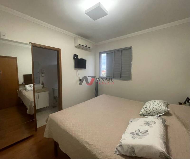 Apartamento com fino acabamento, face sombra, 2 dormitórios com armários, sendo 1 suíte que possui ar condicionado, sala dois ambientes com ar condicionado, sacada gourmet com fechamento em Blindex e adaptada hoje como sala de TV, com ar condicionado, cozinha com armários, área de serviço, elevador, 2 vagas cobertas na garagem e boa localização!