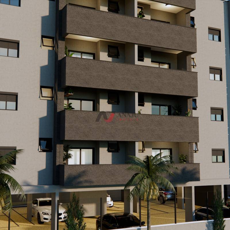 Prédio de Apartamentos em construção de 01 e 02 dormitórios, com suíte ou sem suíte, 01 vaga ou 02 vagas de garagem, de 43 m² e 67,66 m², entrega prevista para Novembro/2026, correção mensal dos valores de acordo com o índice INCC durante a obra e após a obra mais 1% ao mês, valores a partir de R$ 405.960,00 de 2 dormitórios 1º andar, fotos meramente ilustrativas.