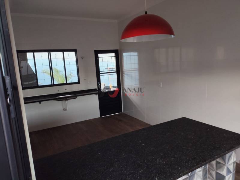 Casa nova , 2 dormitórios ,sala, cozinha integrada a varanda com churrasqueira, 3 vagas , rica em jardins, área de serviço, portão basculante, aceita financiamento Minha Casa Minha Vida .