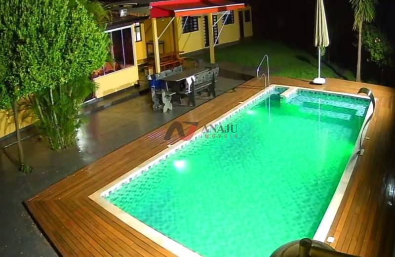 Condomínio fechado com portaria 24hs, entrada com identificação facial, A chácara dos sonhos para morar ou lazer, casa térrea com 4 dormitórios sendo 2 suítes, sala de estar, sala de jantar, cozinha ampla com armários, área de serviço e dependências de empregada, área de lazer com salão de festas com churrasqueira, fogão e forno a lenha, cozinha, dois vestiários, piscina de 9x4m com aquecimento solar, cascata e hidro, lago ornamental para peixes com cascata, amplo jardim com árvores frutíferas (jaboticaba, manga, amora, abil, limão, caju, pindaíba, goiaba, atemóia e macadâmia), jardim gramado com árvores, condomínio com muito verde