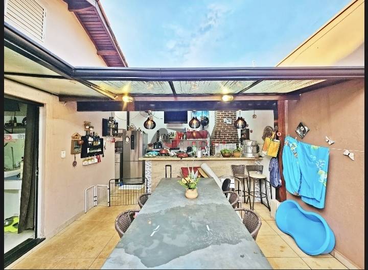 sala estar, sala de jantar, cozinha separada, área de serviço, área gourmet com churrasqueira a carvão, completa de armários planejados, 2 máquinas de ar condicionado, 2 vagas de garagem coberta, podendo colocar mais 2 carro na frente da casa, agende sua visita.