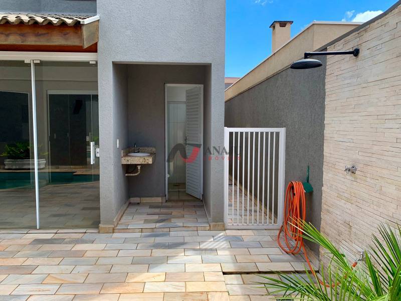 Excelente sobrado com 3 suítes sendo a master com closet, ares condicionados, living, jantar, escritório, lavabo, piscina( com bombas instaladas/ sem aquecimento), revestimento em pedras. boiler, ampla área de gourmet com churrasqueira(coberta em madeira), chuveirão externo.