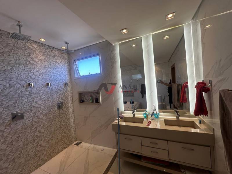 VENDO sobrado alto padrão, pronto para morar. totalmente mobiliado, Casa moderna e com design imponente! Projetada e executada por Engenheiros e Arquitetos dentro das normas vigentes, 280m² de área construída com a piscina. com 03 suítes, entregue com paisagismo, armários, coifas, churrasqueira, forno, cooktop, micro-ondas eletronic, geladeira 03 portas Electrolux, mesa de laca com 10 cadeiras, 7 ares-condicionados instalados (todos inverter), há local para instalação de ELEVADOR, espelho bisotê grande, sofá/cama para 7 pessoas, tv SMART 65"LG, tv SMART 22" LG embutida no armário da cozinha, cervejeira para 4 caixa de cerveja de 600ml, mesa redonda em alumínio com 04 cadeiras, 05 banquetas, ambos para a área gourmet, churrasqueira elevgrill com motor e 4 espetos, três camas de casal, sendo uma magnética caso o comprador tenha interesse, TODOS estes citados estão embutidos no valor do imóvel, sala de jantar com mesa em laca para 10 pessoas e espelho bisotê; cozinha: equipada com bancadas em Silestone, muito rica em armários, sala de estar integradas + ADEGA para vinhos e outras bebidas, abajur de 2,5 metros em cobre com acendimento no pé, lustre especial na mesa de jantar; sala de TV (sofá cama retrátil para 7 pessoas, tv de 65" LG com inteligência artificial e móveis planejados; lavabo decorado com espelhos bisotê em um lado da parede do piso ao teto, outro lado da parede em cimento queimado/polido e LED especial; área de serviço com armários, pia com pedra Silestone, revestimento na parede em bisotê e maquina lava e seca de 11 quilos com garantia do motor até 2028; área gourmet com churrasqueira elevegril, bancadas em Silestone, coifa e armários planejados e WC decorado; piscina aquecida, revestida com pedra vulcânica original (Hijau) (muda de cor ao ser molhada), paisagismo em torno da piscina e do restante do sobrado com iluminação planejada e plantas também planejadas, pois necessitam de ser regadas apenas uma vez na semana.Superior: escada com madeira marítima de alta qualidade (pequi preto 5 cm), parapeitos de vidro temperado de 10mm com pinças cromadas de alta qualidade, escritório com estante linda com nichos vazados e outros não, abertura das portas com toque e mesa com duas cadeiras executivo, lustre especial com 13 lâmpadas; suíte 01: contem closet com espelhos, banheira para dois com hidromassagem, dois chuveiros de teto pressurizados, duas pias em porcelanato especial, cama magnética com cabeceira e armários planejados, a abertura da veneziana blecaute da sacada é por controle remoto, há também sacada grande de frente para a mata de ST Tereza com paisagismo; suíte 02: contem armários planejados com espelhos, cabeceira planejada com LED, cama box, lustre especial e iluminação planejada; suíte 03: armários planejados com espelhos, sacada grande com vista para o Cond. Quinta da Boa Vista A, porcelanato alto padrão polido na área interna do sobrado e o acetinado nas áreas externas e molhadas; escada com pisantes em madeira nobre (naval); portas em madeira maciça com 25 cm os portais; 07 ares-condicionados inverter; telhas em Poliuretano (acústica e térmica, a melhor do mercado), aquecedores solares para toda a residência e piscina; revestimentos 3D de primeira qualidade frontal, na bancada da cozinha e bancada da área gourmet, Iluminação com vários pendentes especiais de alto padrão, dicroicas e LEDs especiais em todos os ambientes, energia fotovoltaica com 16 placas e micro inversores