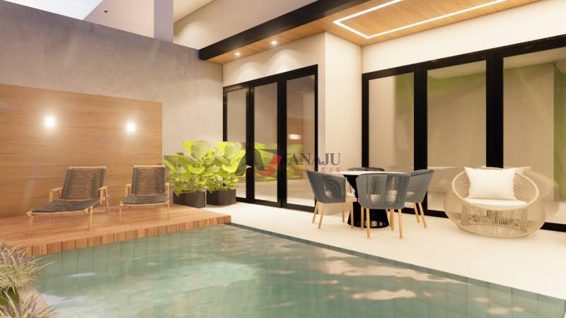 Piscina aquecida, iluminada, com prainha e toda em pastilha, a casa será entregue com: