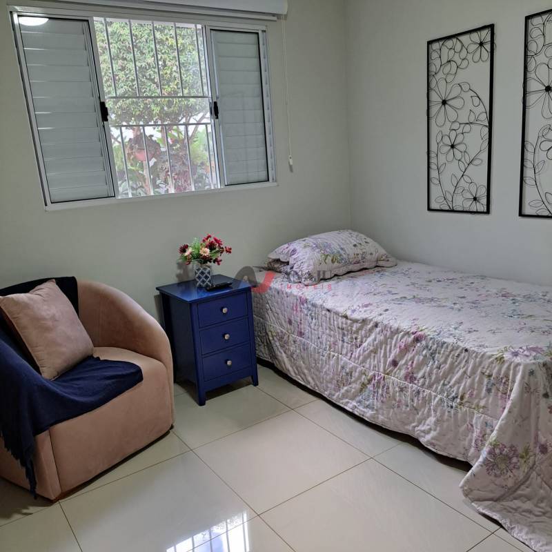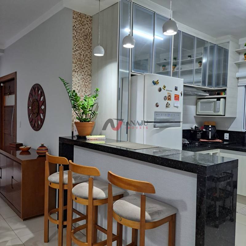 Excelente casa com 2 dormitórios (1 suíte) + 1 escritório, banheiro social, sala dois ambientes, cozinha planejada, armários embutidos em 2 dormitórios, bancada de trabalho, nichos, prateleiras e móvel porta - documentos no escritório, sala ampla 2 ambientes, dormitórios e escritório com ar condicionado, área de serviço coberta e rica em armários, quintal com jardim e laguinho com carpas, aquecimento solar, garagem para 2 carros, condomínio com portaria 24 horas.