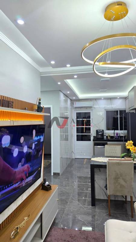 Linda casa no Condomínio Ametista reformada com 02 dormitórios, armários, ar condicionado sala, cozinha planejada, piscina, 02 vagas de garagem.
