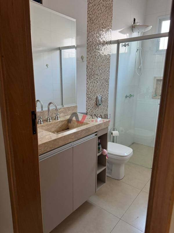 Excelente casa com 3 dormitórios sendo 1 suíte, todos com ricos armários e mesa estudo, ar condicionado, sendo a suíte com closet e painel, banheiro da suíte com 2 chuveiros e 2 pias.