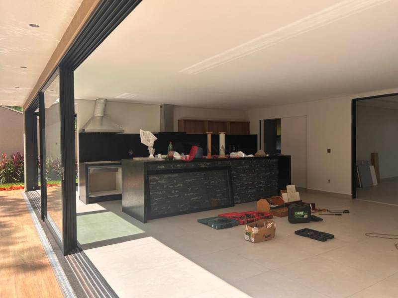 móvel de alto padrão com 4 suítes com closet, sendo master com hidromassagem, living integrado, lavabo e escritório. Área gourmet equipada com chopeira e balcão refrigerado, piscina com spa e cascata, vestiários, despensa e paisagismo. Completo em armários, com projeto luminotécnico, box, espelhos e persianas automatizadas. Imóvel entregue com armários planejados em todos os ambientes . Agende já sua visita !